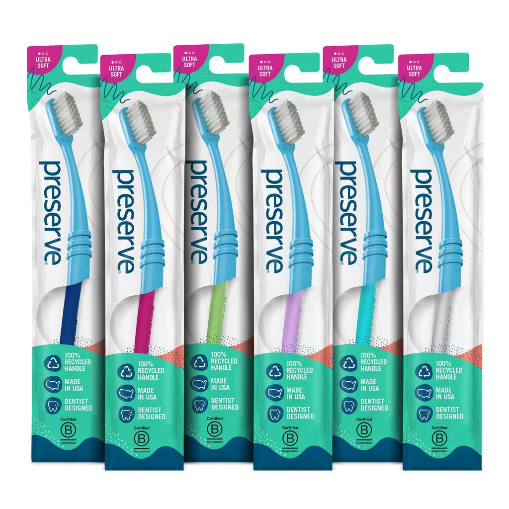Preserve consulted closely with dental professionals to create a toothbrush that gets your teeth cleaner but minimizes your impact on the environment. The design includes a curved handle for those hard-to-reach places and a three-level bristle arrangement to massage your gums. And while the bristles are brand new, the handle is made from recycled #5 plastics (which include things like yogurt cups.) Preserve toothbrushes are recyclable through Preserve's mail-in recycling program. Our lightweight pouch now features new packaging designs made especially us for through a collaboration with artists for humanity.