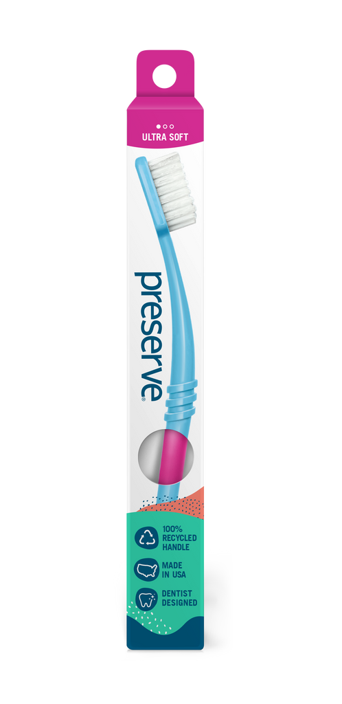 Preserve consulted closely with dental professionals to create a toothbrush that gets your teeth cleaner but minimizes your impact on the environment. The design includes a curved handle for those hard-to-reach places and a three-level bristle arrangement to massage your gums. And while the bristles are brand new, the handle is made from recycled #5 plastics (which include things like yogurt cups). Preserve toothbrushes are recyclable through Preserve's mail-in recycling program.