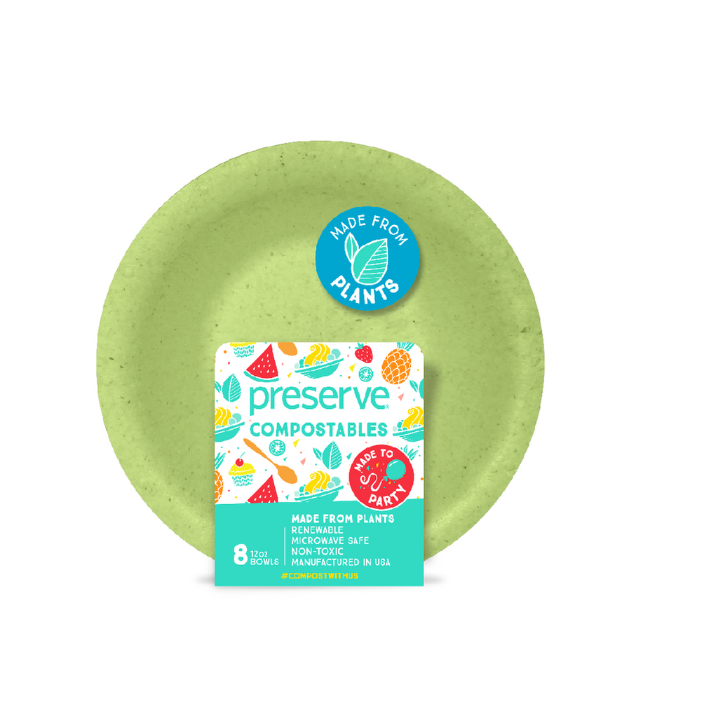 Preserve Compostables are made from plants and return to the soil when the party is over. These bowls are freezer and microwave safe and are ovenable up to 420⁰F. They are non-toxic and manufactured in the USA from renewable resources.  For some gatherings single-use products make sense, and we are excited to offer single-use products that are made from renewable resources and are lighter on the earth.